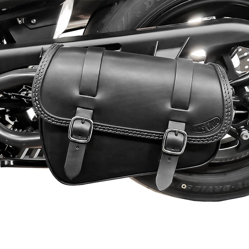 また、縁取りのトリム部のレザーとサドルバッグ本体の段差を見れば、とてもしっかりとした強度も伺える。