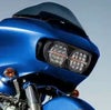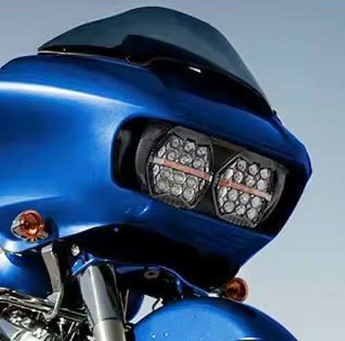 FLTRモデル2015以降用のLEDヘッドライト。 ●ハチの巣状のハニカムデザインのガードが特徴的なヘッドライト。 ●ロービーム部にはパターンレンズ、ハイビーム部はマルチリフレクターレンズを採用し最適な配光を実現。 ●ハイビームとロービームの中央部にはウインカー発光機能を備えています。 ロービーム:120W 6000LM ハイビーム:240W 6500LM