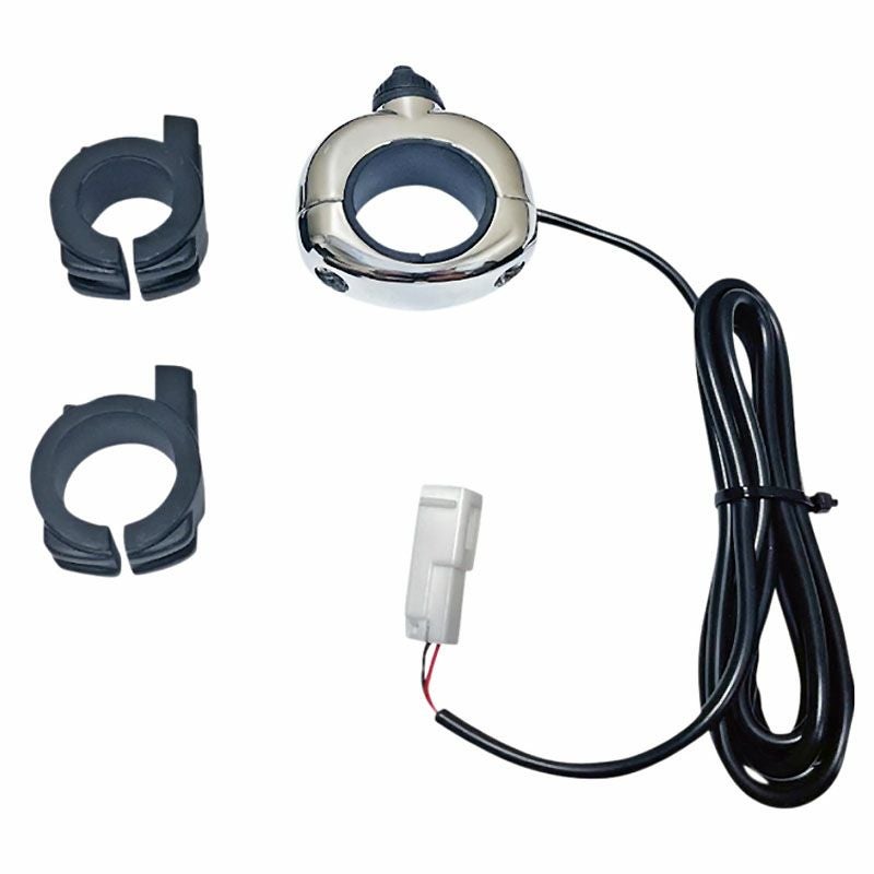 ハーレーのフォグランプやドライビングランプ等のアクセサリーライトを直接オン/オフするためのスイッチです。 <特長> ●プッシュボタン付きクランプをハンドルバーに装着します ●ラバースペーサー付きでハンドル径7/8インチ(約22.2mm)、1インチ(約25.4mm)、1-1/4インチ(約31.8mm)にクランプ可能です ●カプラー付配線付属。付属のカプラーの合わないライトと接続の際は配線接続作業を行なってください