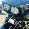 Baja Design製 LP6 LEDヘッドライトを装着できるキットです。 世界最高峰のオフロードレースでの採用実績があるBaja Designs製のライトユニット。 四輪トラックで使用されるワイルドな高輝度LEDユニットをハーレー向けに転用したキットとなりますので 迫力満点のヘッドライトキットです。 近未来的なロボットを思わせるデザインに変わり、他のどのライトにも引けを取らない高いパワーと機能を備えています。 照射範囲が200°で合計10300lmの高輝度LEDを使用しており、独自の冷却テクノロジーにより高い冷却能力とパフォーマンスを実現しています。 また、走行状況に合わせて切り替え可能なランニングライト、低出力モード、高出力モードの3つのモードを備えております。 低出力モード点灯箇所のレンズパターンは、単一のライトで最大限の照射範囲をカバーするDriving Comboです。 -内容物- ・Baja Designs LP6 Pro ×2個 ・ブラケット ・ハーネス ・取付説明書 MADE IN USA ※車検対応品ではございません。 ※Cali Raised Moto(カリレイズドモト)とは、アメリカ合衆国カリフォルニア州に拠点を置く、オフロード車やUTV向けのアクセサリーやパーツを提供するCali Raised(カリレイズド)社のモーターサイクル部門です。 ※Baja Design(バハデザイン)は、車やバイクなどの乗り物用のLEDライトのメーカーです。 アメリカ合衆国カリフォルニア州に拠点を置き、高い技術力とデザイン性を併せ持ち、信頼性の高い明るいLED製品を生み出しています。 FLTRX(ロードグライド) FLTRXS(ロードグライドスペシャル) FLTRU(ロードグライドウルトラ) FLTRK(ロードグライドリミテッド) FLTRXST(ロードグライドST) FLTRXSE(ロードグライドCVO)