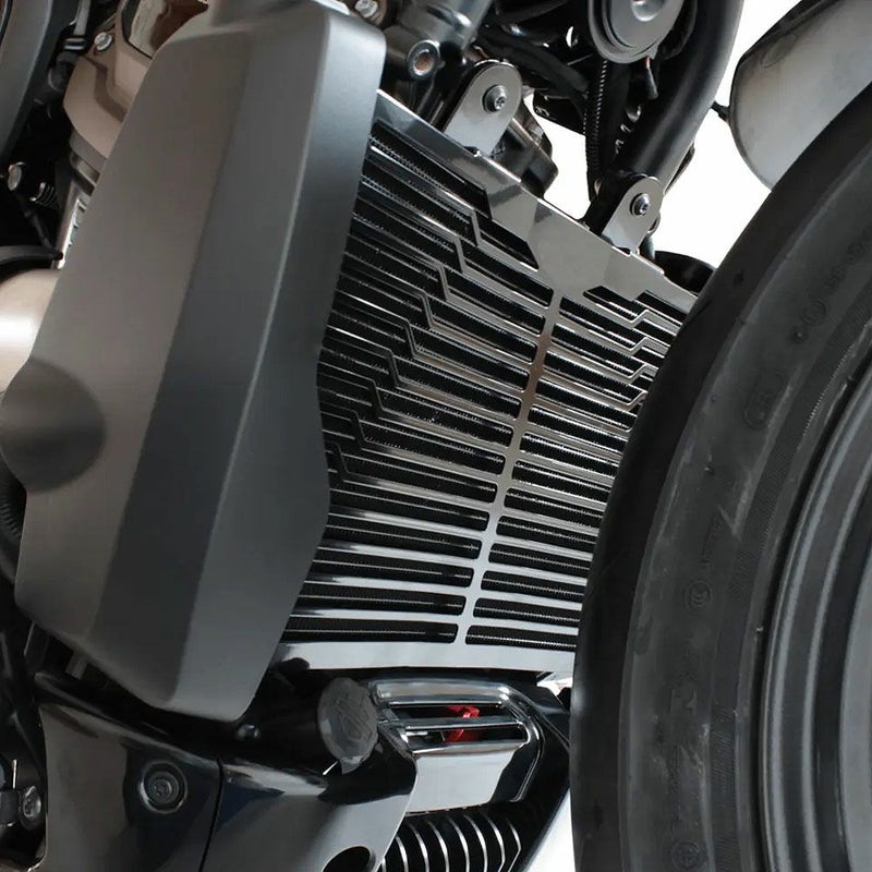 ラジエター前に取り付けるカバー。 スポーツスターSのラジエターコアを飛び石等から保護します。 ラジエターを保護しつつ冷却性能を落とさない粗目形状になっています。 ※取り付けはボルトオン設計なので簡単です。