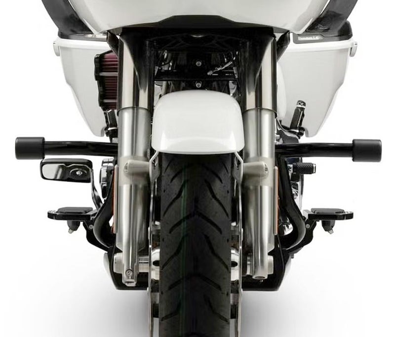 2014以降 ツーリング用 クラッシュバーです。 <特長> ●ウェストコースト・パフォーマンススタイル。ロープロファイルのすっきりとしたルックスです。 ●両端のエンドキャップには純正アクセサリーと一目でわかるロゴ文字入り ●CVOロードグライドST標準装備。純正らしい高品質と、しっかりと車体にフィットする設計です ●不意の立ちごけや低速での転倒の際、車体のダメージを軽減します ●取付けに必要なハードウェア付属 ※ロワーフェアリング装着車不可 ※2015~2020 FLTRX/Sは別売フェアリングサポート(49000274 等)が必要です。 ※スライダー取付けボルトは3/8インチ径