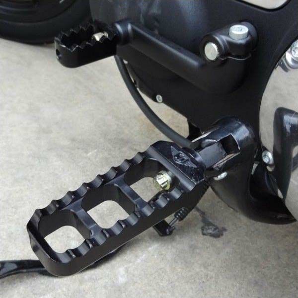 アルミ削りだしの高品質なフットペグ。 好みの角度に調整が可能。 鋸状のデザインがシューズの滑りを防止します。