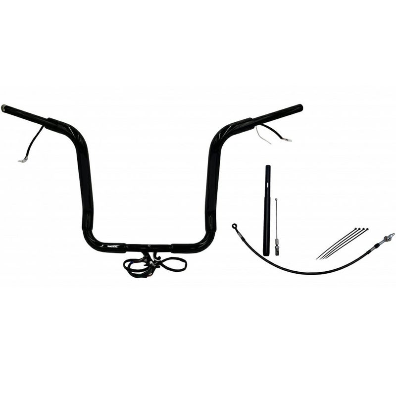 FLHT、FLHX 1.5インチ ラウンドトップ ハンドルバー プラグアンドプレイキット 16インチ グロスブラック Fat Baggers