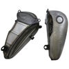 1984~1999 ソフテイル、1985~1986 FXモデル用 ファットボブスタイル・フラットサイドガソリンタンクです。 <特長> ●左右別体式のフラットサイドタンク ●容量5ガロン(約18.9リットル) ●ねじ込み式タンクキャップ仕様 ●未塗装品。好みのカラーにペイントしてください ※タンクキャップは付属しません。1982~1995用のタンクキャップ左右(000959、000960、000630、000631 等)が必要です。 ※1996以降モデルは1995年以前のガソリンコックが別途必要です。 ※塗装前に仮組をして適合確認してください。車両とタンクの個体差により、若干の加工調整が必要となる場合があります。 ※タンクダッシュとタンクの隙間を埋める加工が必要となる場合があります。 ※塗装前に漏れ防止のシール処理を行ってください。
