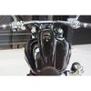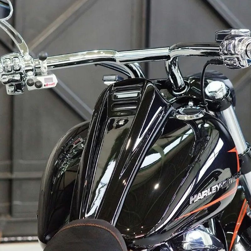 M8ソフテイル ローライダーSTおよびブレイクアウト117用 メーターダッシュパネルです。 このダッシュパネルにはデジタルメーター移設用のウィンドウが付いており、ハンドルマウントのメーターをタンクダッシュ上に移設できます。 ハンドル周りをすっきりとさせることが出来ハンドルやライザーカスタムの自由度が上がり、同時にタンク上のメーターもオールドスタイルとモダンの融合した特別なルックスになります。 タンク上のデジタルメーターは見やすい角度になります。 素材はFRP製。 クロゲルコート仕上げ。未塗装品ですので、好みのカラーにペイントしてください。