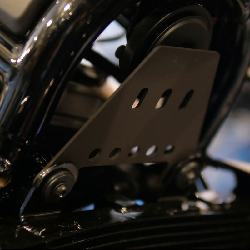 ハーレー RH975 ナイトスター用 ETC取付けブラケットです。 ETCの取り付けスペースが無く、お困りの場合、このブラケットでラジエターの上に装着することが出来ます。 各種ETC用バッグやケースを装着できるよう、プレートに穴あけがしてあります。 ブラックパウダーコート仕上げ。 ※フロントサスペンションローダウン車両はフェンダーと干渉する可能性があります。