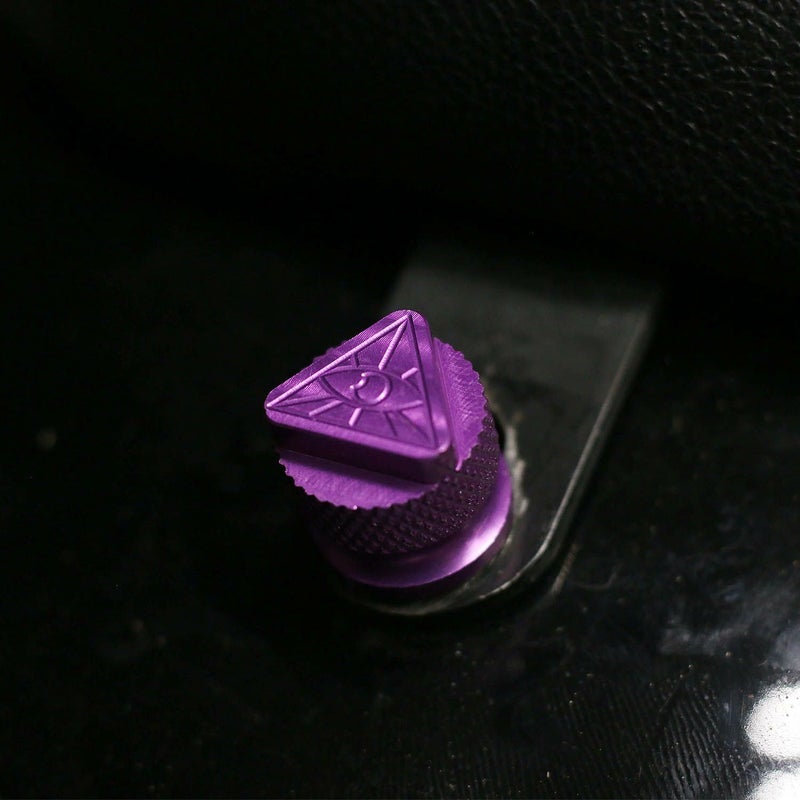 小ぶりでスタイリッシュなシートボルト。 ●CNC機械加工で製作された高精度のメーカーロゴがデザインされています。 ●アルマイト処理された高級感ある仕上がり。 ●1/4-20サイズ。 ※この商品はパープルアルマイトです。