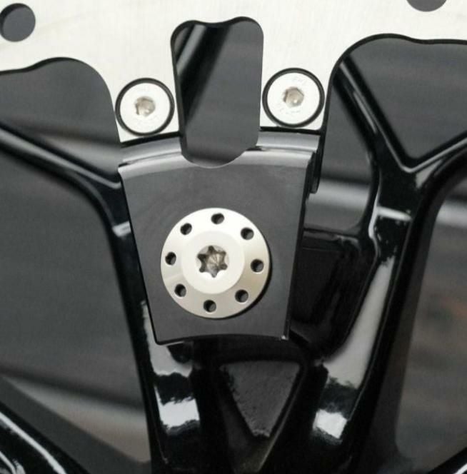 2014以降 ツーリング フローティングローター用ボルトです。 <特長> ●高強度、軽量なチタニウム製。CNCマシンによる削り出し加工で製作しています ●ノーマルボルトとブッシュをこのボルト1本で置き換えます。すっきりとした見た目になります ●引張り強度120,000PSIの高張力ボルト。しっかりと固定でき安心です ●外周部のホールがデザインアクセント。単調になりがちなローター周りをさりげなくドレスアップします ●スポーティーなポリッシュ仕上げ ●サイズは M8x1.25x30(純正品番 41500020 同サイズ) ●フローティングローター用 ●ローター1枚に必要な5本セット(スプリングワッシャー付)