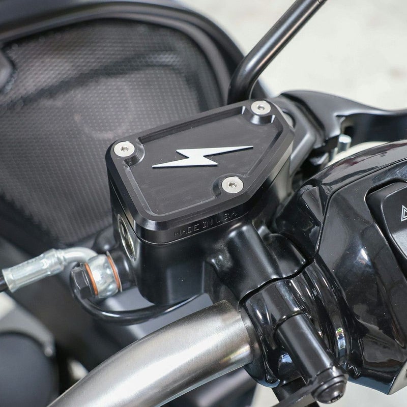 2023以降 CVO ロードグライド、ストリートグライド、2024以降 ロードグライド、ストリートグライド、CVO ロードグライドST用 フロントブレーキマスターシリンダーキャップです。 <特長> ●高品質な6061ビレットアルミニウム製。削り出し加工で製作されており、質感の高い仕上がりです ●ブラックカラーのアルマイト仕上げ。シルバーのThrashin Supply(スラッシンサプライ)ライトニングボルトマークがデザインアクセントです ●ノーマルマスターシリンダーのキャップと交換するだけ。ガスケットはノーマル部品を流用します ●ハードウェアが付属します