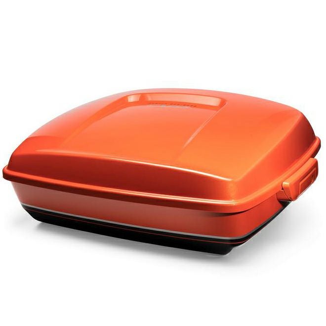 2014以降のハーレー Touring用 カラーペイント済み、チョップドツアーパックです。 カラーはウィキッドオレンジパール。 ツアーパック本体、リッド クロームのヒンジ、ラッチ リッドテザー、ラゲッジマット が付属します。 ※写真のラッチは色が異なります。(参考写真) バックレストパッドやマウントラック装着用のドリル加工済み。 ※取り付けには別途マウンティングラック(53000221等)が必要です。 ※バックレストパッドは付属しません。 ※別売ツアーパック・ロックキット(90300030)が必要です。(ツアーパックロックキットはディーラー販売) ※ツアーパック標準搭載CVOモデルおよびトライク不可
