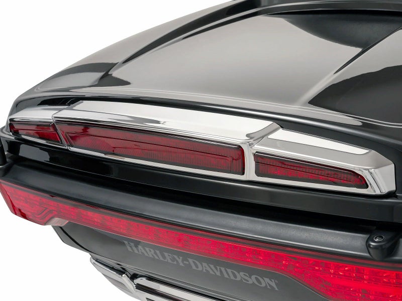 ツアーパックのリッド部分に取り付けるライト。 2014以降のラッシュモアスタイルのツアーパックであれば、キング、チョップド、共に取り付け可能です。 ポジションライト、ブレーキライト、ウインカーに対応。 ポジションやブレーキ時の光り方を、様々なパターンから選択可能です。 光パターンの選択はスマホのアプリより行います。 ※取付には穴開け加工が必要です。
