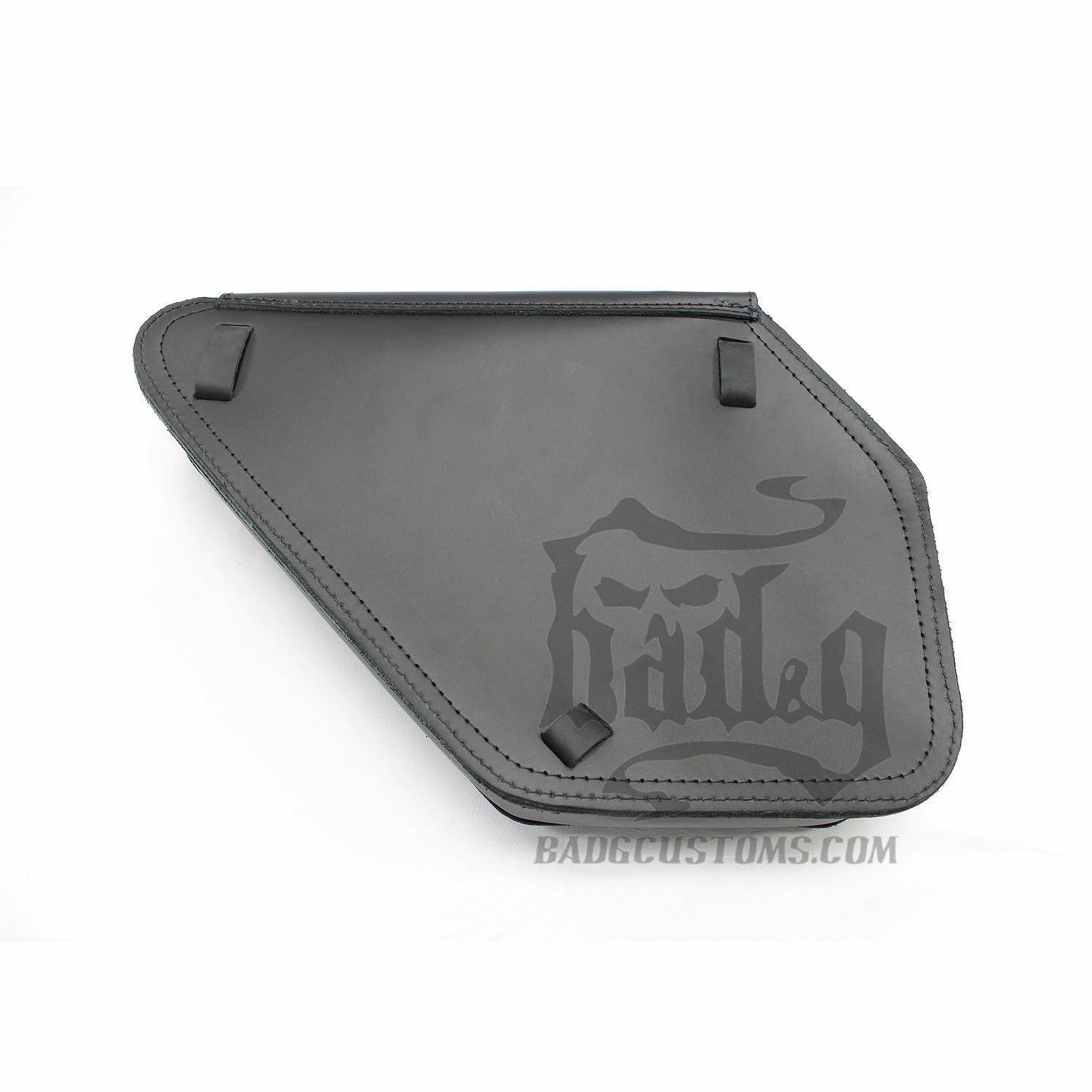本革製スタンダードスタイルの右側用サドルバッグ。 リアサスペンションの横にピッタリフィットする形状です。 標準装備のリアウインカーを避ける形状なのでウインカーの移設等の必要がありません。 BAD&G CUSTOMはアメリカでレザー製品のカスタムを主に行うショップです。 受注生産なので、バックルカラーやステッチカラー等の選択が出来、自分好みに仕上げる事が可能。 また、オプションのクイックリリースバックルを追加する事で、見た目はそのままに開閉が楽になります。 バックルカラーは、クローム、ブラス(真鍮)、ブラックから選択可能。 ステッチカラーは写真の14色より選択可能。