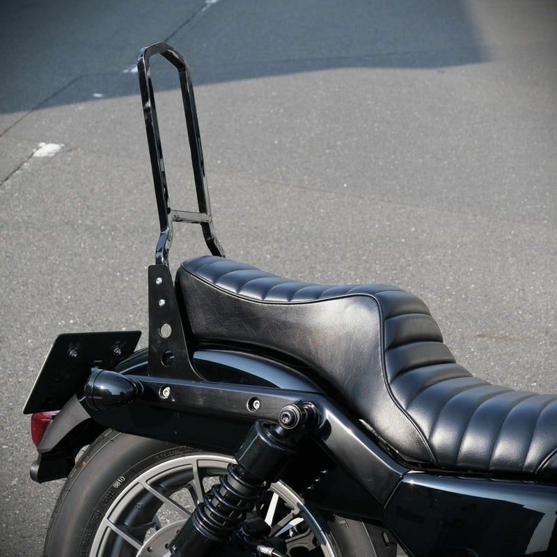 ハーレー ナイトスター用 リジッドマウント・シーシーバーです。 <特長> ●ナイトスター専用設計。ナローなルックス ●チョッパー、フリスコスタイルの双方に似合うデザイン ●荷物を括り付けることが出来る、適度な高さ ●厚みのあるダブルシートにも対応できるようクリアランスに配慮した設計 ●0822-0299等のパッド装着部のバー間隔(内側幅)が4インチ(約10.2cm)の、スクエアタイプシーシーバーに対応のパッドが使用可能です。