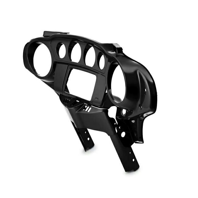 2014以降のハーレー ツーリングモデルの、バットウィングフェアリング用、インナーフェアリングです。 フェアリングマウントミラー装着車用。 カラーはビビッドブラック(塗装済み) 高級感のあるダッシュ周りにドレスアップ出来ます。 インナーフェアリング本体、エッジトリム、ダッシュパネルおよびメディアドアその他が付属します。