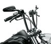 直角に曲がったチゼルスタイルの、1インチ径ハンドルバーです。 高さは8インチのミニエイプ。幅は26インチでナローなドラッグバースタイルです。 全体的にクラシックなチョッパースタイルになります。 スチール鋳造製ですので、曲がりの部分も一体型で頑丈です。 直角部分も内部は角が取れたカーブになっており、配線がし易くなっています。 また、ボトムエンドには取り外し可能なバー&シールドロゴ入りのキャップ付きですので、配線の際にハンドル内部にアクセスし易く出来ています。 ※ヒーテッドグリップとは併用できません。 ※車両により、ハンドルを切った際にガソリンタンクに干渉する場合があります。事前にサイズをご確認下さい。