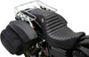 パッセンジャーシート部を周囲から包み込むような形状のデタッチャブルラゲッジラックです。 ラックの高さとパッセンジャーシートの座面の高さがほぼ同一になりますので、シート座面をラックの一部として使うことが出来ます。 このラックは細身タイプの社外シート(ノーマルシートよりも2インチ(約5cm)程度幅の狭いタイプ)を想定してパッセンジャーシート用開口部を狭くしてあります。 全幅は通常のラゲッジラックよりも広く、大きな荷物を積みやすくなります。 リアエンドは跳ね上がっており、荷物が落ちずらい形状です。 デタッチャブル用ドッキングハードウェアが付属します。 ※ハーレー純正ドッキングキットは使用不可。 ※写真はノーマルシート用(602-2630)のものです。(イメージ写真)  このシートはサドルマンなどの比較的幅の狭いシートにぴったりとフィットするようにデザインされています。リア部分が幅広のシートは干渉します。 ※付属のCOBRA製のドッキングポイントは他社製のドッキングポイントと互換性はありません。