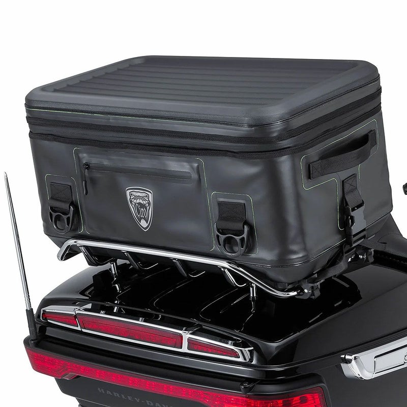 ツアーパックのラックに最適なクイックリリース式ツーリングバッグ。 独自のクイックリリースラッチ機構で、ツアーパック上部のラックに簡単に取り付け出来るよう設計されています。 トップとボトム部分はハードモールドになっており耐久性に優れています。 4か所にアタッチメントポイントが取り付けられています。 インナーに取り付けられている2つのメッシュポケットは取り外して使用出来ます。 840デニールの丈夫なナイロンベースの防水ターポリン素材。 継ぎ目部分も溶着仕様です。 防水ジッパーを使用しています。 CIRO(シロ)の反射ロゴ付きですので、暗い道で他車からの視認性も高く、安心です。 レインカバー付属。 ※エアーウィングラックにはフィットしません。