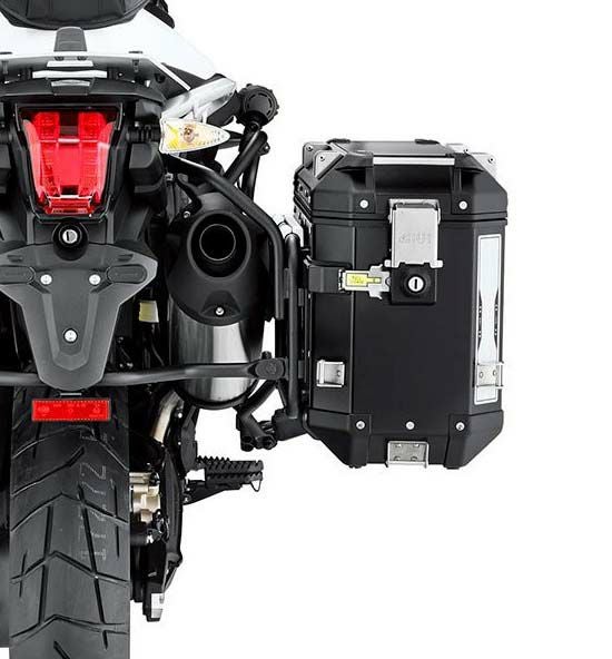 タフな造りのGIVIのサイドケース・右側用 右側はマフラーがあるので、薄型の37Lがぴったりとフィットします。 ワンタッチで車両から取り外し、取付けができます。 1.5mm 厚のアルミ板のベースと補強用のアルミダイキャスト材や角部補強にテクノポリマー樹脂材を使用した堅牢な造りです。 4点止めの車種別専用パニアホルダー(別売)とともに使用します。 セキュリティー・キー付き。 リッドは蝶番を外して開閉可能で、ケースから取り外しも可能です。(はみ出るような荷物を一時的に上蓋と一緒に括り付ける事で積載可能) GIVIの PL-CAM/ PLR-CAM パニアホルダー専用品です。PL/PLRなど他のホルダーには適合しません。 保証期間:1年間