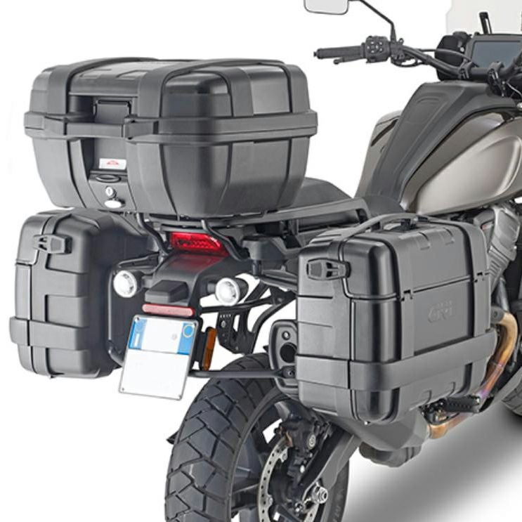 ハーレー パンアメリカに GIVIのMONOKEY サイドケースをマウントするためのサイドホルダーです。 GIVI MONOKEY シリーズのサイドケースを装着出来ます。 ※MONOKEY TREKKER OUTBACKシリーズサイドケースは不可。(PLO8400CAMが適合) 取付けに必要なハードウェアが付属します。