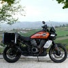 ハーレー パンアメリカ用のアルミサイドパニア左右および、アルミサイドパニア用サブフレームのセットです。 サブフレームは車種専用設計ですので、ボルトオンで装着出来ます。 パニアはバッグ内側のレバーの開閉だけでサブフレームに脱着できます。 パニアは角をカットしたクラシカルでエレガントなデザイン。厚さ1.5mmのアルミ製。リア部分は厚さ3mmに補強されています。 マットブラックパウダーコートフィニッシュ。 イタリアの職人による手作り品です。 角部分はABS樹脂製のバンパー付き。 リッドはキーロック出来ます。 リッド裏面はバンジーコードをひっかけるアンカー付き。付属のバンジーコードで小物を止めるのに便利です。 ケース内側はベルクロで脱着可能な厚さ2.5mmのソフトなネオプレン製内張付きで、荷物を保護します。 取付けに必要なボルト類が付属します。