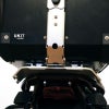ハーレー パンアメリカにアルミトップケースをデタッチャブルマウント出来るフルキットです。 アルミトップケース、マウントプレートおよび、車体に装着するサポートフレームが付属します。 アルミトップケースの容量は36L。フルフェイスヘルメットが入ります。 厚さ1.5mmの高強度アルミニウム製。更にリア部分は厚さ3mmに補強されています。 内側は2.5mm厚のネオプレンゴムの内張付き。 ロック、ヒンジ、スクリューは高品質ステンレススチール製。 角にはABS樹脂バンパー付き。 キーロックシリンダーはダストカバー付。 付属のキー1本でリッドのロックとキャリアへの脱着が出来ます。 防水ではありません。インナー防水バッグ(UG006 等)の使用をお勧めします。