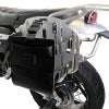アルミ製サイドプレートとレザーフロントパネルのセットです。 レザーフロントは長さ調節可能なストラップでサイドプレートに取り付けており、中身に合わせて幅を調節できます。 また、レザーフロントを取り外して、サイドプレートへ直接バッグや荷物を括り付けることも出来ます。 サイドプレートは付属のUボルト4個でサイドフレームのパイプに装着します。 単品販売(左右装着の際は2個必要)