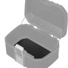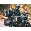 スペイン バルセロナのモーターサイクル用バッグメーカー、SHAD(シャッド)のアルミトップケースです。 武骨過ぎない洗練されたデザイン。アドベンチャーバイクは勿論のこと、オンロードメインのツアラーにも大変良く似合います。 ボックス本体は厚さ1.2mmの軽量アルミパネル製。繋目の無いシームレスな構造によって軽量化と頑丈さを両立しています。 キズのつきにくいブラックパウダーコート仕上げ。 TERRAロック機構によって、蓋の開閉と車体への着脱はワンタッチで行えます。 着脱用レバーがそのままキャリングハンドルになります。 キーシリンダー保護用のカバー付です。 容量55L 耐荷重10kg ※装着には別売のベースプレートと車種別トップマスターフィッティングキットが必要です。 【サイズ】 H418 x W570 x D322mm 容量55L 【素材】 アルミニウム(本体) ステンレススチール(ロックシステム) 【カラー】 ブラック