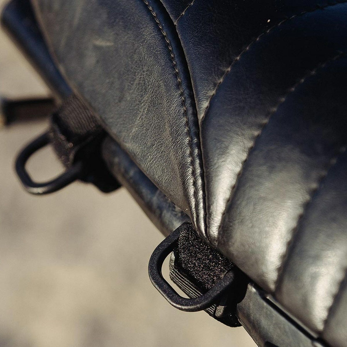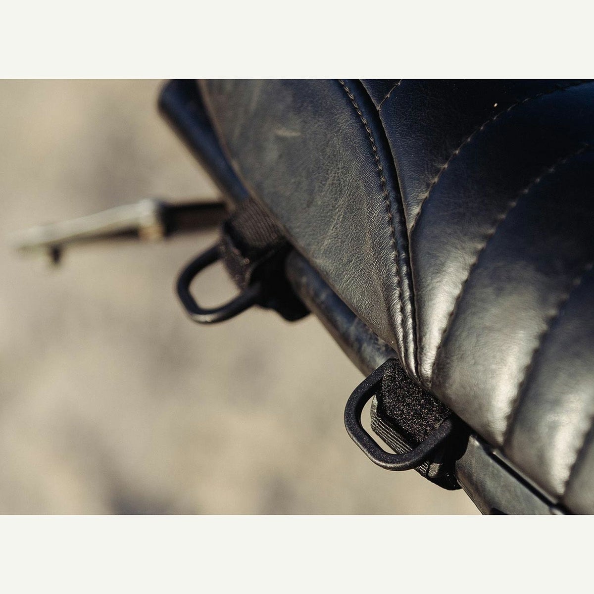 荷物を括り付けるマウントポイントとなるDリング付ストラップ
