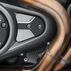 ハーレー Revolution Maxエンジン用、タイマーメダリオンです。 鍛造アルミニウム製。 グラファイトカラーのベースに、精緻にカットされた部分のアルミシルバーのシャープなコントラストがアグレッシブでハイパフォーマンスなイメージを演出します。 同デザインのクラッチメダリオンと組み合わせれば、統一感のあるルックスになります。 取付け用のハードウエアが付属します。