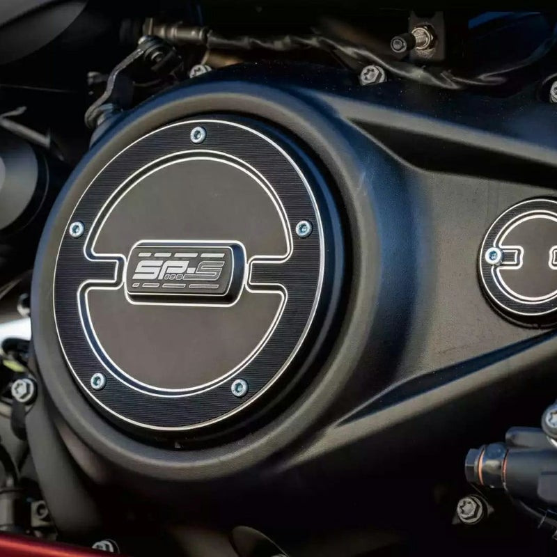ハーレー スポーツスターS、パンアメリカ、ナイトスター RH975用 クラッチカバーです。 センターにSP-Sのロゴ入り。 アルミニウム製。CNCマシンによる精緻な削り出し加工品です。 カラーはブラック。アノダイズ処理済み。