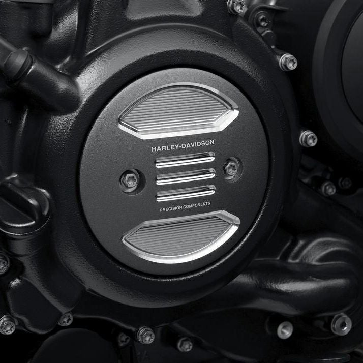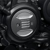 ハーレー Revolution Maxエンジン用、オルタネータープラグカバーです。 鍛造アルミニウム製。 グラファイトカラーのベースに、精緻にカットされた部分のアルミシルバーのシャープなコントラストが、アグレッシブでハイパフォーマンスなイメージを演出します。 同デザインのタイマーメダリオンと組み合わせれば、統一感のあるルックスになります。 ハードウエアはノーマル部品を流用します。 Oリングが付属します。