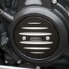 スポーツスターS、ナイトスター、パンアメリカ用 オルタネーターカバーです。 A6061-T6高強度アルミニウム合金製。精緻な削り出し加工品です。 変色や腐食に強いアルマイト処理済みです。 ブラックのベースに、横方向に刻まれた溝はシルバーの、コントラストカラー。 ノーマルカバーと交換するだけでドレスアップ出来ます。