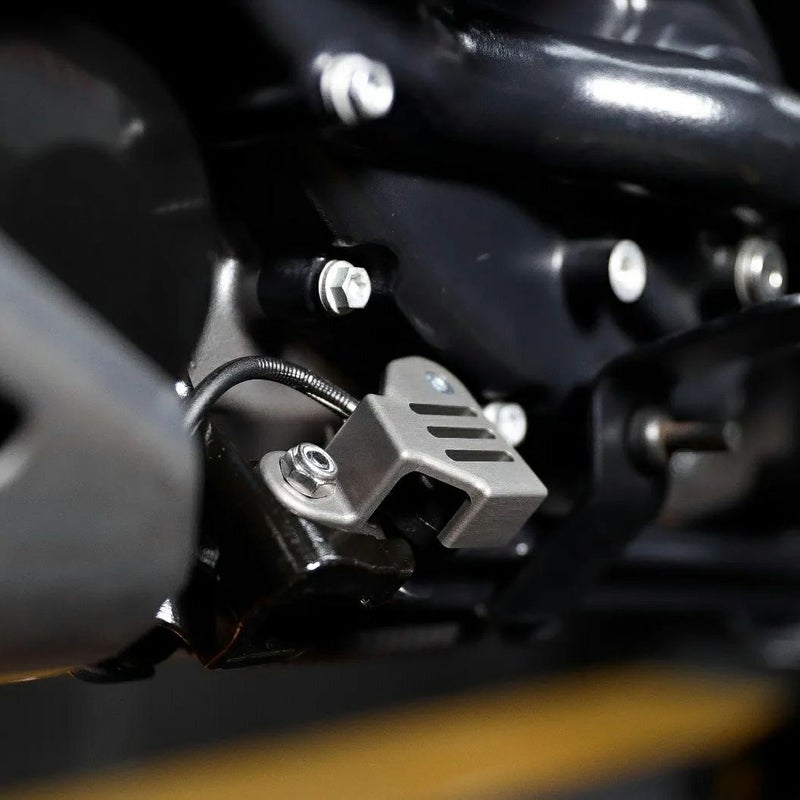 ハーレー パンアメリカ用 サイドスタンドスイッチガードです。 オフロード走行時の撥ね石や岩等から、サイドスタンドスイッチを保護します。 6061-T6ビレットアルミニウム製。アノダイズフィニッシュ。 取付けに必要なハードウェアが付属します。