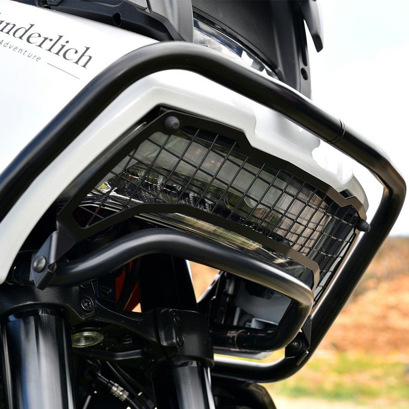 パンアメリカ/スペシャル用 フェアリングプロテクションバーです。 高価なアッパーフェアリングを転倒や走行中の障害物によるダメージから守ります。 フェアリングの周囲に沿う形でフェアリング周りのデザインにマッチし、更にアドベンチャーバイクの雰囲気を強調します。 25mm径の頑丈なスチールパイプを、CNCベンダーで曲げ加工し、ブラケットはしっかりと溶接してあります。 左右2ピース構造を中央の取り付けブラケットでしっかりと連結します。 ブラックのパウダーコート塗装仕上げ。 取付けに必要なハードウェア、ブラケットが付属します。