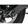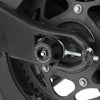 パンアメリカ/スペシャル用 リアアクスルスライダーセットです。 転倒時にスイングアーム、リアアクスル、チェーンテンショナー周辺のダメージを軽減します。 ハイスピードでの転倒時は路面からの衝撃を軽減しつつ、すり減ることで徐々に摩擦抵抗を強めることによりトータルでのスライド時間と距離を短縮します。 素材は特殊プラスチック製。耐衝撃性、耐摩擦性に優れています。 アクスルシャフトに通したロッドの両側に固定します。 左右ペア
