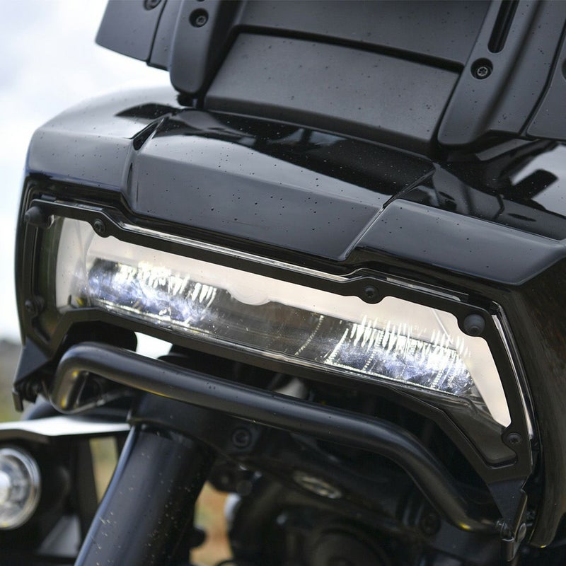 パンアメリカ/スペシャル用 ヘッドライトカバーです。 撥ね石やオフロード走行時の木の枝等障害物による損傷から大切なヘッドライトを守ります。 素材は頑丈なアクリル樹脂製。キズがつきにくく、UVや石油による変質にも強い素材です。 可倒式のため、オフロード走行時のみ立てて使用することも出来ます。また、バイクの掃除の際にも倒してヘッドライトを掃除出来ます。 フレーム部はステンレススチール製。精緻な仕上がりです。 取付けに必要なブラケット、ハードウェアが付属します。