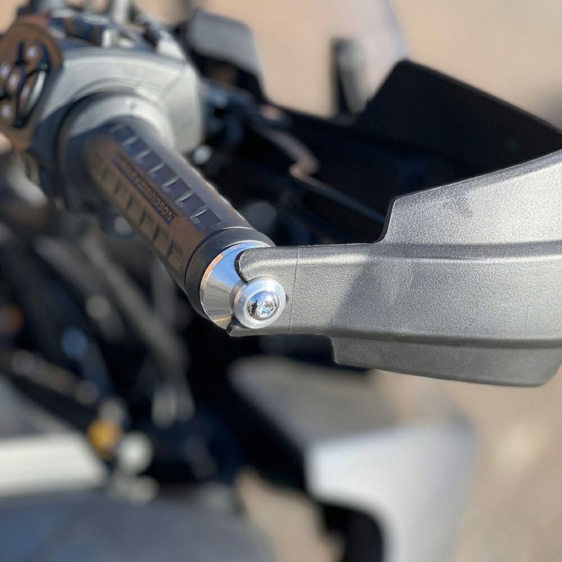 パンアメリカのハンドガード用 ハンドルバーエンドセットです。 社外品のハンドルに交換する際にこのバーエンドアダプターを装着すれば、パンアメリカスペシャルに標準搭載のハンドガードをそのまま装着出来ます。 高品質な6061-T6アルミニウム製。 マシンポリッシュ仕上げ。 バーエンド、アンカー、ボルト各2個のセットです。 左右ペア