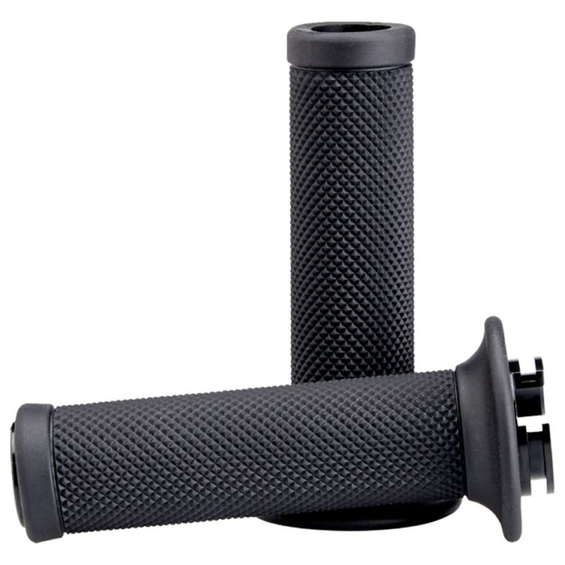 ハーレー RHモデル(スポーツスターS、ナイトスター、パンアメリカ)用カスタムグリップセットです。 <特長> ●コア部分は6061-T6t鍛造アルミニウム。CNCマシンによる削り出し加工品です。 ●付属の滑り止めラバーはTPVラバー製。握り心地が良く、耐UV性に優れ、長期間の使用でも硬化しづらく快適性を維持します。 ●着脱式アルミ製エンドキャップ付きで、ラバーの交換も簡単に行えます ●左右ペア
