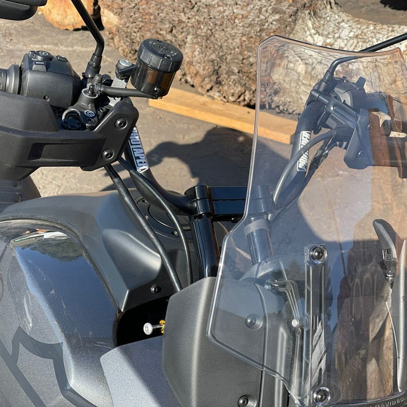 パンアメリカ用 プルバックライザーです。 このライザーは、多くのアドベンチャー、モトクロス用ハンドルに採用されている、1-1/8インチ径のクランプ用となっていますので、レンサルその他の社外テーパーハンドルバーへの交換の際選択の幅が広がり、大変便利です。 (ノーマルハンドルは1-1/4インチクランプ径のため使用不可) 本体は1018マイルドスチール製。ボトムクランプ一体型なので、ハードなライディングでもハンドル周りがしっかりと安心感のあるフィーリングです。 トップクランプは6061アルミ二ウム製です。 ライザーボルトはM10スレッド。ノーマルボルトをそのまま使用出来ます。 ハンドル交換の際ノーマルのハンドガードをそのまま使用する場合、別売バーエンド(HEAPA-AL、HEAPA-BLK)を使用出来ます。 ※写真はイメージです。(参考写真)