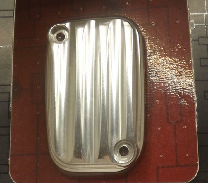 大柄な溝が特徴の、ノスタルジアデザイン・フロントブレーキマスターシリンダーカバーです。 ビレットアルミニウム製。CNCマシンカットで製作されています。