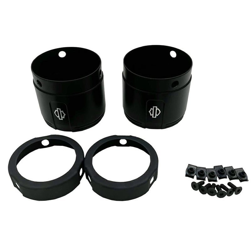 ハーレー Touring用 Screamin' Eagle ストリートキャノン4.5インチマフラー(65100220)に装着するエンドキャップセットです。 素材はビレットアルミニウム製。 デザインは先端部外周の深い溝と、バーアンドシールドロゴインサートの組み合わせが重厚感のある、エンパイアシリーズ。 精悍なブラックアノダイズフィニッシュ。 取付けに必要なハードウェアが付属します。 左右セット ※片側に小さい傷があります。(写真2~3枚目) ※写真4枚目は、装着イメージとなります。