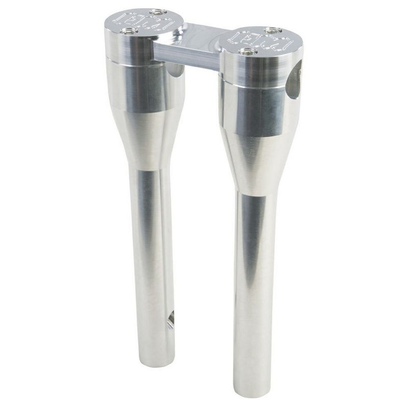 同メーカーのモトスタイル ハンドルバーにマッチしたデザイン、クランプ径のライザーです。 1.125インチ径(1-1/8インチ)ハンドル用です。 トップクランプは1ピース構造となっており、耐久性があります。 配線中通し用の穴が空いているので、配線を中通しすることでハンドル周りをすっきりとした印象にできます。