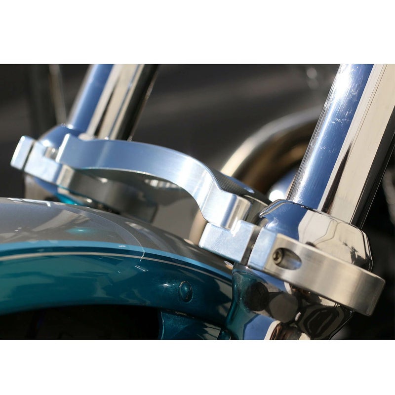 49mm ミッドグライド用フォークブレス。 シンプルで車両のスタイルを崩さない形状です。 5ピース構造なので取り付けは簡単です。 CNC機械加工で製作された非常に高級感ある仕上がり。 ※写真は参考画像です。 ローライダー FXLR ストリートボブ FXBB、FXBBS
