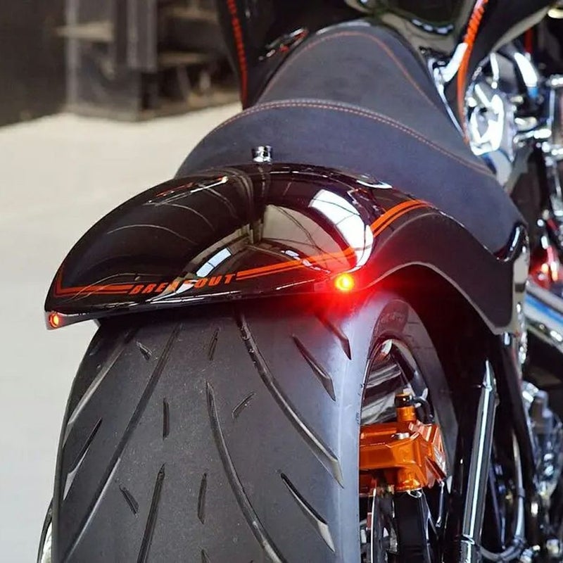 M8ソフテイル ブレイクアウト、ファットボーイ用 ショートリアフェンダーです。 ファットなリアタイヤを強調し、迫力のリアビューにカスタム出来ます。 タイヤ幅はノーマルの240mm幅から260mm幅まで適応します。 テール部分左右にケラーマンのラン/ブレーキ一体型LEDウィンカー(Eマーク付)が埋め込まれ、消灯時にはウィンカーの存在が目立たず、点灯時には遠くからでもはっきりと視認することが出来ます。 更にケラーマン製レジスターも付属しますので、ハイフラ対策も万全です。 素材はFRP。クロゲルコート仕上げ。 未塗装品ですので、好みのカラーにペイントしてください。 ボルトオン設計。 ETC収納スペース付で、ETCの設置場所に煩わされず、すっきりとまとめることが出来ます。 サイドにはスチールプレートの補強入りですので、タンデム仕様にも適応します。 ※ノーマルシートは装着不可。カスタムファクトリー ノイズ(NOY'S)の専用シートベースを使用してカスタムシートを製作してください。 ※ナンバーは移設が必要です。