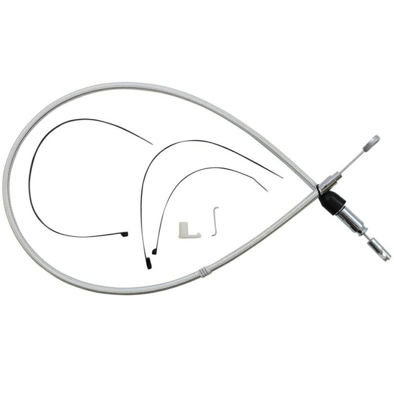 ハーレー M8ソフテイルおよび2021以降ツーリング、トライク用のアッパークラッチケーブルです。 ケーブルアジャスターより上の部分です。 40インチ長(約102cm) ※トラベル部分2-5/16インチ(約5.9cm)を含む M8ソフテイル ヘリテイジクラシック、ローライダーのノーマル長です。 外装はスターリングクロマイト。 ゴージャスなクロームカラー(メッキではありません)のステンメッシュにクリアビニールジャケット仕様です。 ※写真はイメージ写真です。 バットウィングフェアリング装着車不可