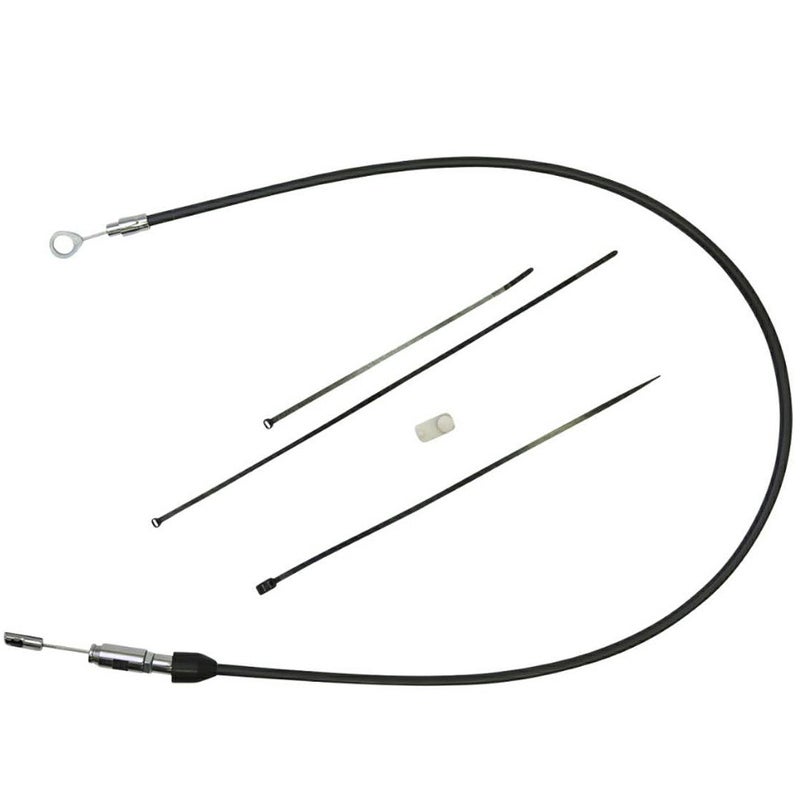 ハーレー ロードグライド、ロードキング、M8ソフテイル用 アッパークラッチケーブルです。 アッパー部分のみ、ノーマルのロワーケーブルと簡単に接続出来るため、ケーブル交換の手間を軽減し、コストパフォーマンスに優れた製品です。 ケーブル本体外装はブラック。フィッティングはクロームです。 ジャケット内部は摩擦抵抗の少ない仕様で、注油済なので、直ぐに使用出来ます。 全長45インチ(約114cm)。2021以降ロードグライドのノーマル長同等です。補修用として使用出来ます。 その他2021以降ロードキング、ロードキングスペシャル、および2018以降M8 ソフテイルのハンドル交換時のクラッチケーブル延長用としても使用出来ます。