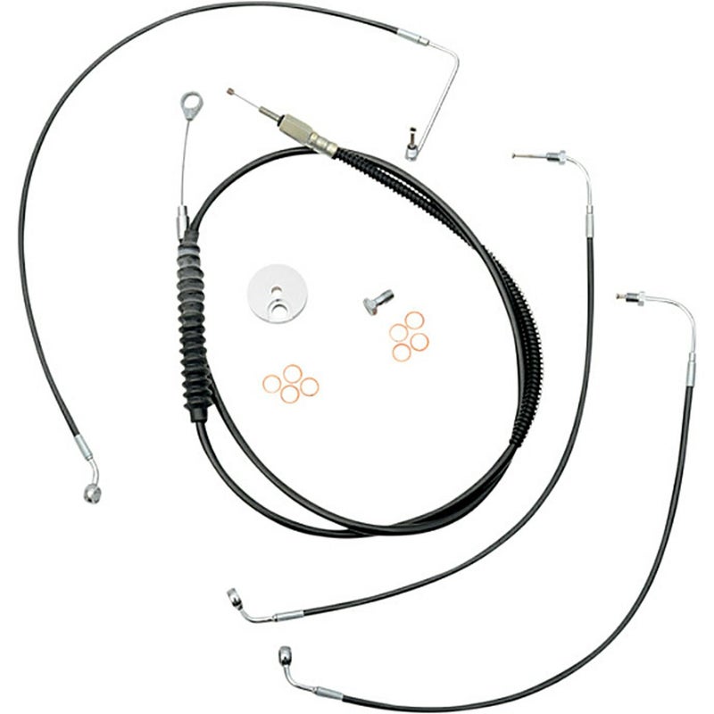 M8 ローライダーS/ST、ファットボブ用 延長ケーブルキットです。 <特長> ●18~20インチトールのエイプハンドル用 ●ブレーキライン、クラッチケーブルのキット ●クラッチケーブルはフルレングス。ブレーキラインはアッパーおよびロワーラインのセット ●ステンレスメッシュにブラックのビニールジャケット仕様 ●フィッティングはクローム ※ハンドル配線は付属しません。
