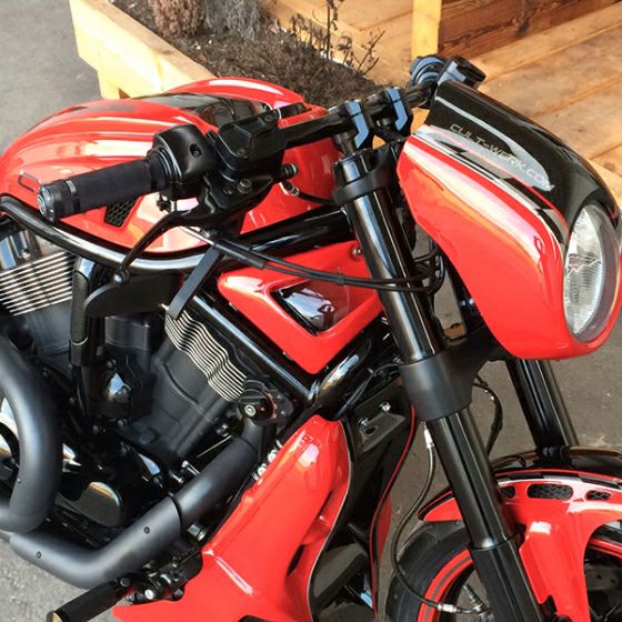 ハーレー用のドラッグハンドルバーです。 カルトワークやキラーカスタムのVロッド用カスタムパーツとの組み合わせに最適な、ロープロファイルでアグレッシブなスタイルのハンドルバーです。 ほぼ全てのスポーツスター、ダイナ、ソフテイル、モデルで配線の延長なく装着可能です。 車両により配線が長すぎる場合があります。 ハンドル径は1インチ。 配線中通し穴が無しのタイプです。 ケーブルスロットル用