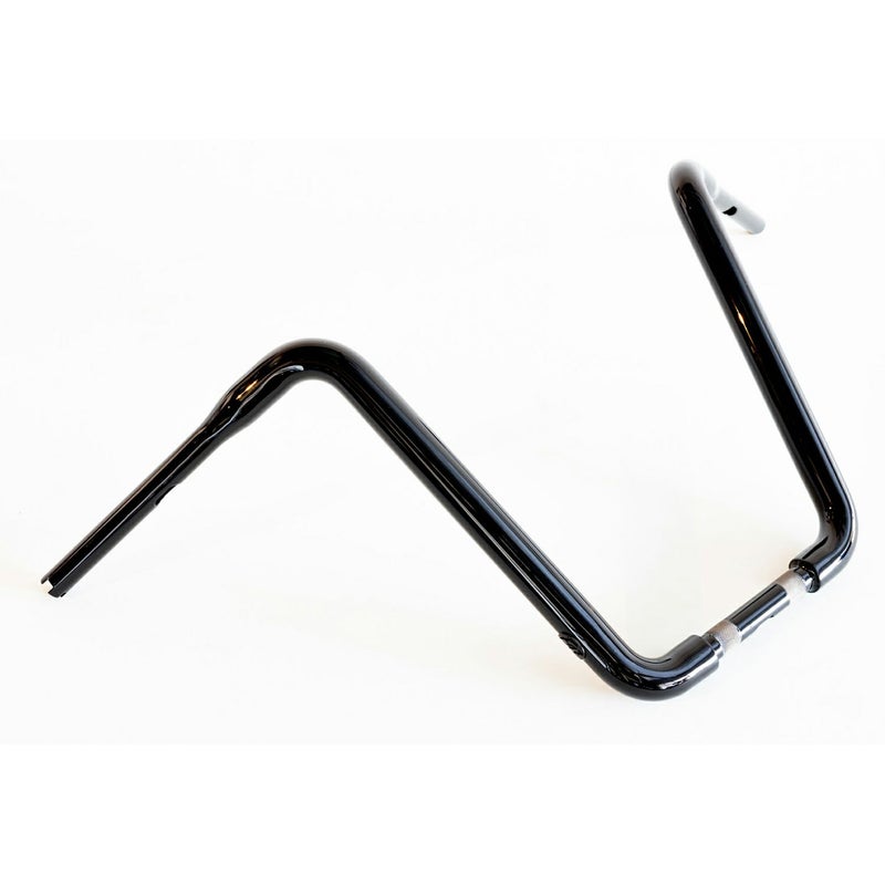 ロードキング、ソフテイル用 エイプハンドルバーです。 トラディショナルスタイルのギャングスタ―ハンドルバーの気高いシェイプをベースに、1.5インチ径の重厚さをプラスしています。 ハンドル径は1.5インチ。 ハンドコントロールとクランプは1インチ径。 ロードキングやソフテイルに似合います。 カラーはグロスブラック 電子制御スロットル用 配線中通し用の穴が開いています。 ※ロードキング/クラシック、ハイウェイキングはノーマルライザー不可